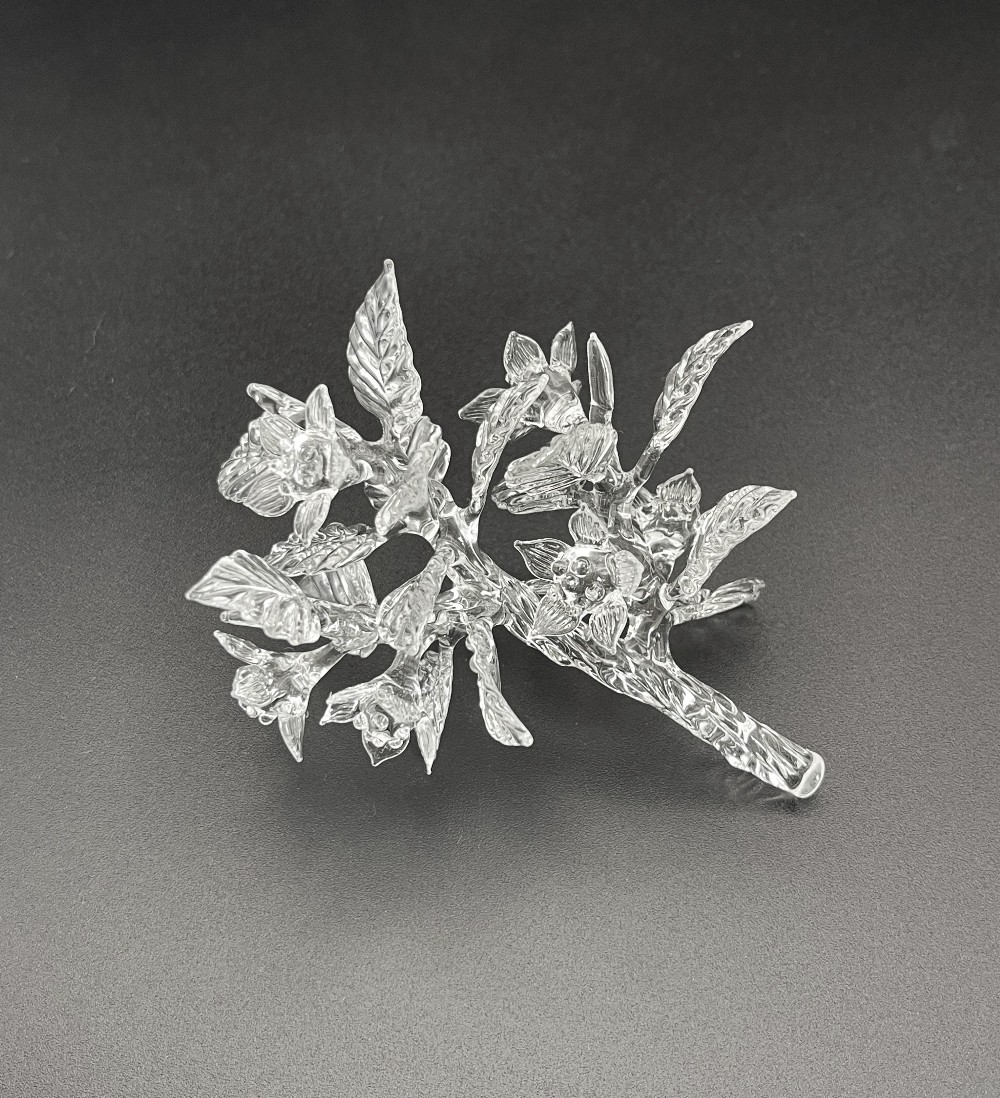 This glass branch was made by Kit Paulson. It measures 4"L x 3.5"W x 2.5"H.